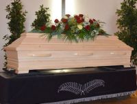 rote und weiße Rosen, Palmblätter, Schleierkraut und Grün